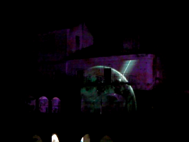 We worked with two mac powerbooks, 3 dvd's, 2 V-4 mixing tables and 12-input video matrix with 4x6.500L and 4x2.500L beamers being projected inside the 250 sqm convents cloister.